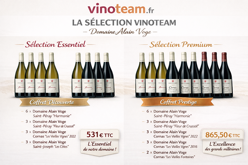 Fondé en 1958, le Domaine Alain Voge fait partie des noms majeurs de la Vallée du Rhône septentrionale. Sur 13 hectares seulement, répartis entre Cornas, Saint-Péray et Saint-Joseph, il incarne une vision rare : celle d’un domaine de coteaux, exigeant, entièrement tourné vers la précision et l’expression du terroir.